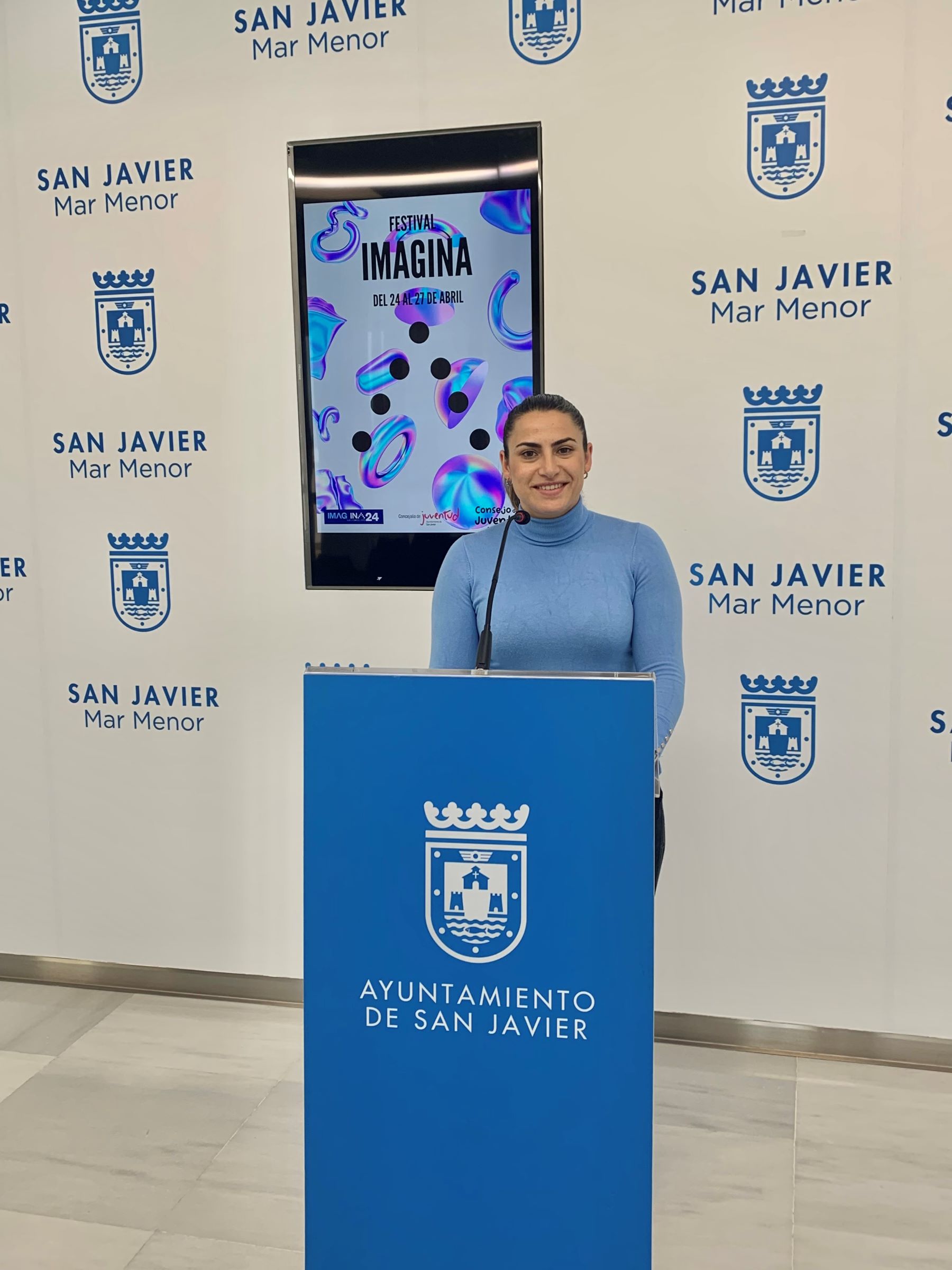 La concejala de Juventud, Isabel Madrid ha presentado hoy el cartel de la nueva edición del Festival Imagina 2024 que se celebrará del 24 al 27 de abril próximo y ha invitado a la participación en el Festival que fomenta la exposición artística de jóvenes creadores. Madrid, recordó que el Festival ofrece a los creadores la producción de sus trabajos y espacios públicos del municipio para darlos a conocer. El cartel, seleccionado entre una veintena de trabajos presentados a concurso, es obra de la joven de San Javier, Lucía Gracia que ha ideado una composición de piezas tubulares de estética pop que parecen flotar en el espacio.