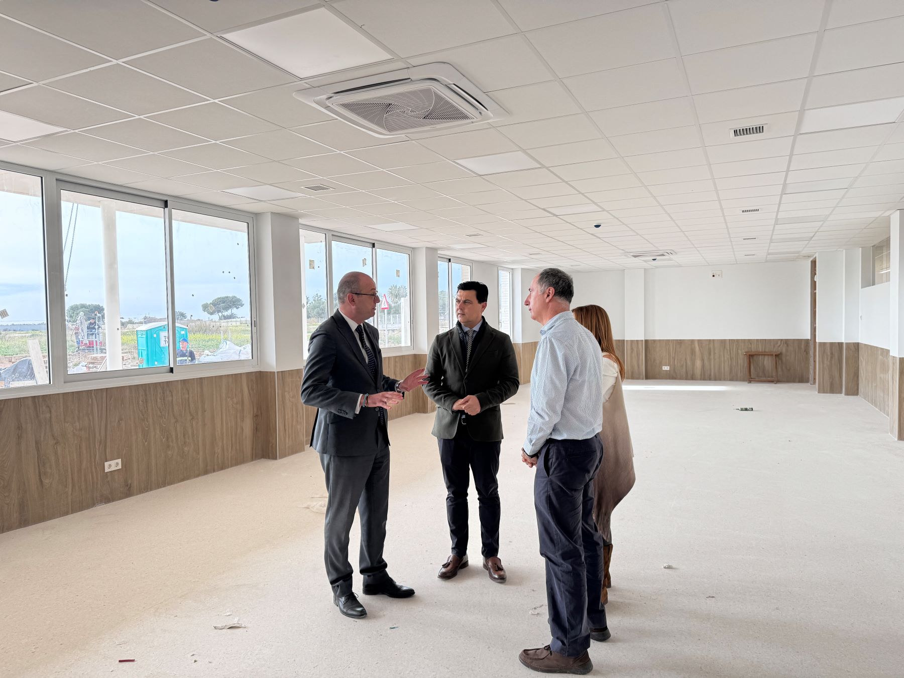 Las obras de ampliación del IES Mar Menor, de Santiago de la Ribera, estarán finalizadas esta primavera por lo que el nuevo edificio, dedicado en su totalidad a la Formación Profesional, estará listo para su inauguración en el próximo curs escolar. Así lo ha anunciado hoy el consejero de Educación y Formación Profesional, Victor Marín, durante una visita a las obras acompañado por el alcalde de San Javier, José Miguel Luengo y la concejala de Educación, María José Bernal. El director del centro, Joaquín Comas los acompañó en un recorrido por las nuevas instalaciones donde los operarios trabajan en los últimos retoques.