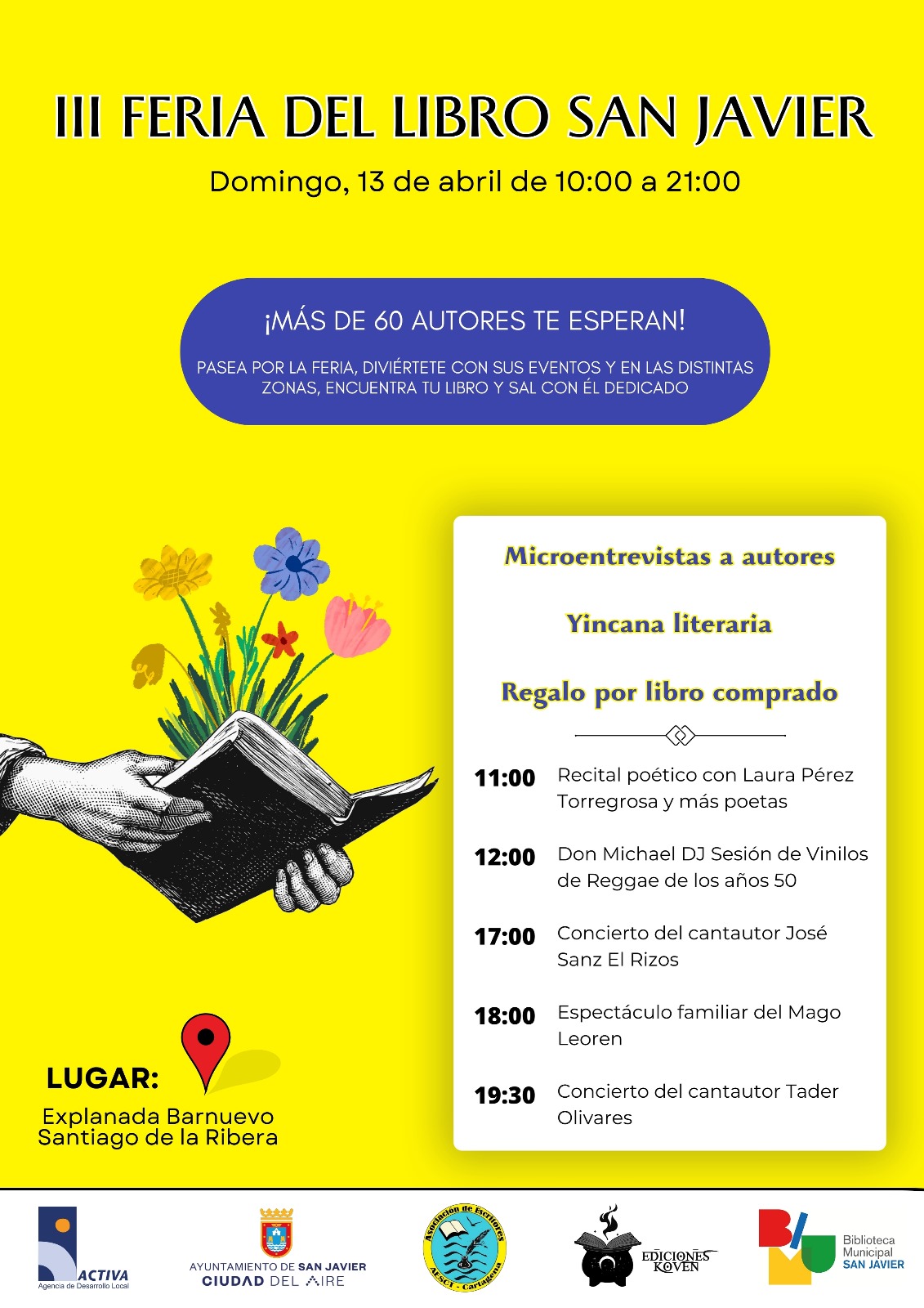 Feria del libro. Durante todo el día en la Explanada Barnuevo de Santiago de la Ribera. Feria del libro. Domingo 13 de abril. Más de 60 escritores, magia, conciertos, recitales, regalos, yincana...