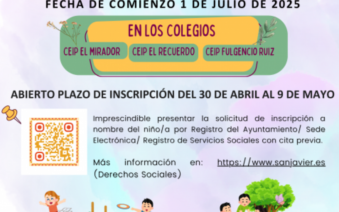 Se publica el listado provisional de alumnos/as admitidos/as en la Escuela Municipal de Verano 2025. Para cualquier reclamación se puede enviar hasta el día 12 de junio un email a servicios.sociales@sanjavier.es